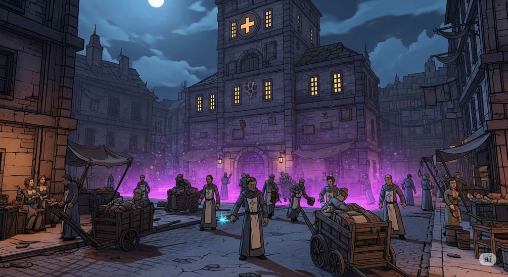 This is a handcrafted, system-agnostic collection of locations, NPCs and story starters in a seedy neighborhood of a magical-medieval city. You get neighborhood maps, NPCs and adventures aligned with a rough neighborhood theme.